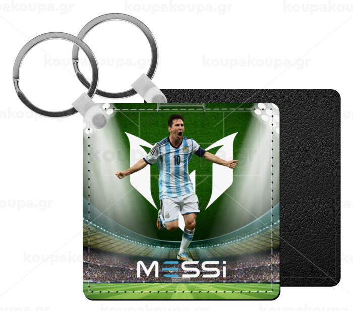 Λιονέλ Μέσι, Leo Messi, Μπρελόκ Δερματίνη, τετράγωνο ΜΑΥΡΟ (5x5cm)
