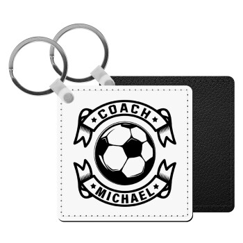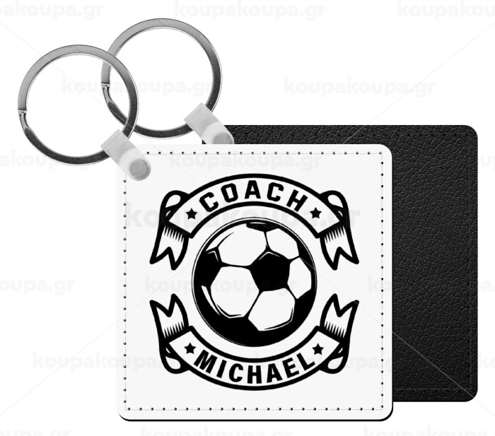 Soccer coach, Μπρελόκ Δερματίνη, τετράγωνο ΜΑΥΡΟ (5x5cm)