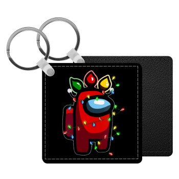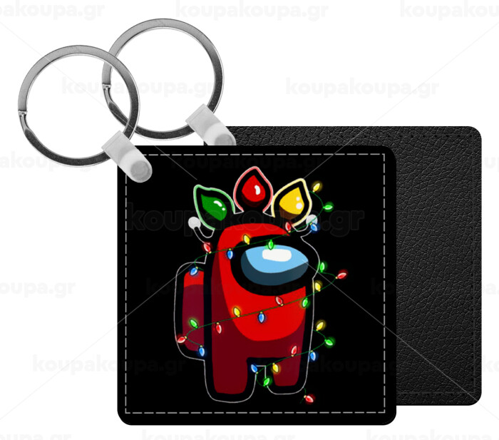 Among US xmas lights, Μπρελόκ Δερματίνη, τετράγωνο ΜΑΥΡΟ (5x5cm)
