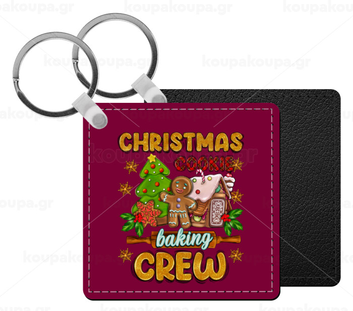 Christmas Cookie Baking Crew, Μπρελόκ Δερματίνη, τετράγωνο ΜΑΥΡΟ (5x5cm)