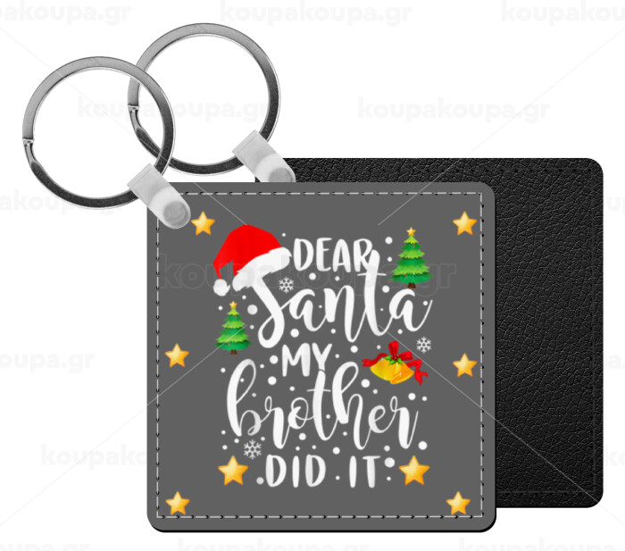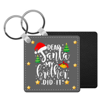 Dear santa my Brother did it, Μπρελόκ Δερματίνη, τετράγωνο ΜΑΥΡΟ (5x5cm)