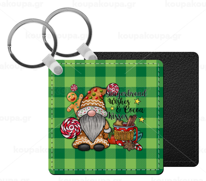 Gingerbread Wishes, Μπρελόκ Δερματίνη, τετράγωνο ΜΑΥΡΟ (5x5cm)