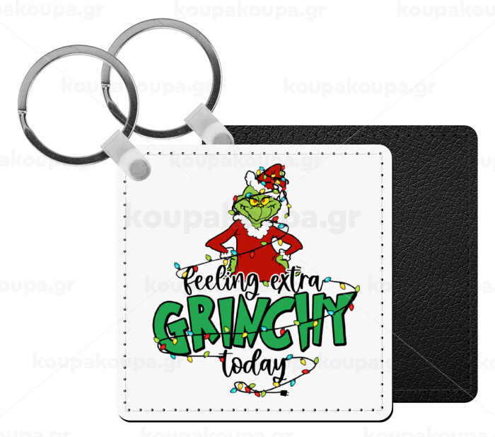 Grinch Feeling Extra Grinchy Today, Μπρελόκ Δερματίνη, τετράγωνο ΜΑΥΡΟ (5x5cm)