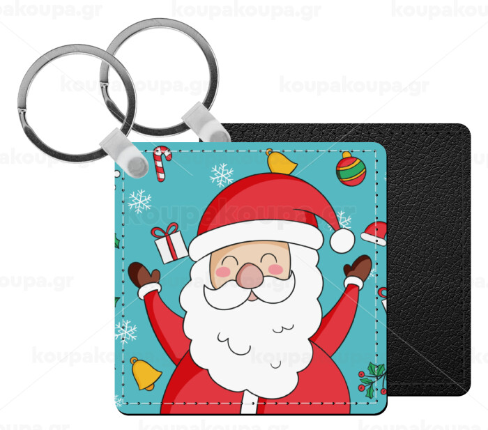 Santa Claus gifts, Μπρελόκ Δερματίνη, τετράγωνο ΜΑΥΡΟ (5x5cm)
