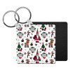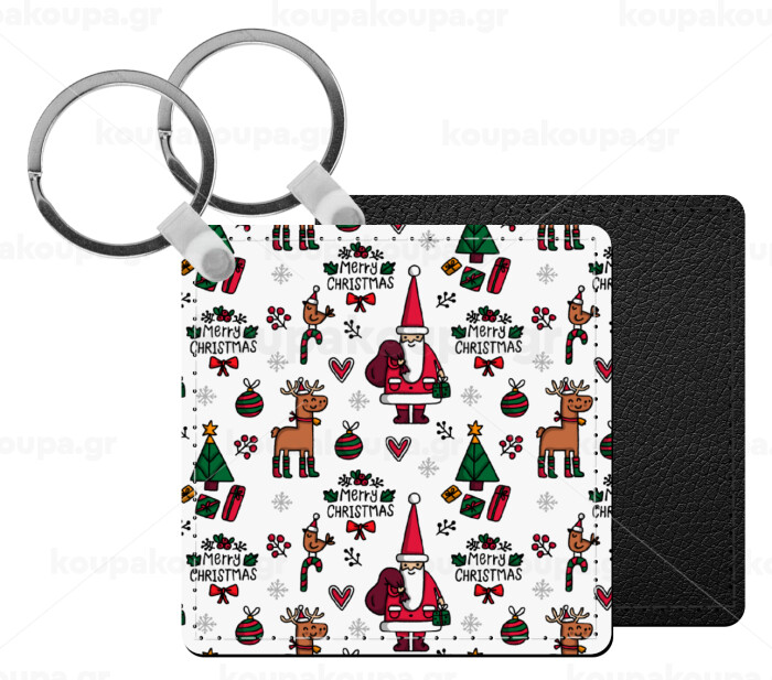 Santas, Deers & Trees, Μπρελόκ Δερματίνη, τετράγωνο ΜΑΥΡΟ (5x5cm)