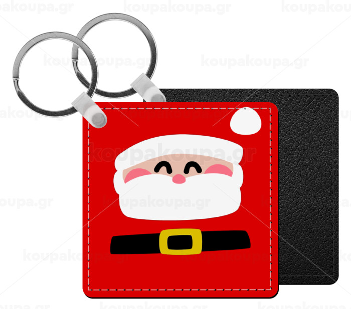 Simple Santa, Μπρελόκ Δερματίνη, τετράγωνο ΜΑΥΡΟ (5x5cm)