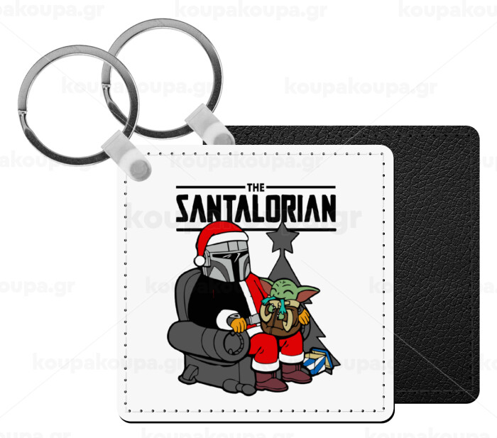 Star Wars Santalorian, Μπρελόκ Δερματίνη, τετράγωνο ΜΑΥΡΟ (5x5cm)