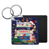 Christmas FRIENDS, Μπρελόκ Δερματίνη, τετράγωνο ΜΑΥΡΟ (5x5cm)