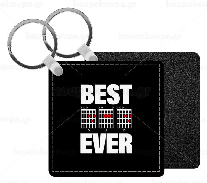 Best DAD Ever συγχορδίες κιθάρας, Μπρελόκ Δερματίνη, τετράγωνο ΜΑΥΡΟ (5x5cm)