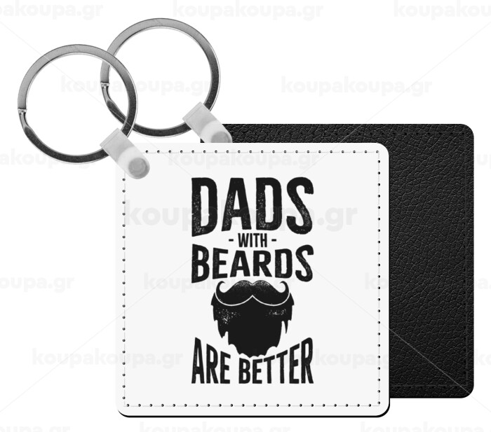 Dad's with beards are better, Μπρελόκ Δερματίνη, τετράγωνο ΜΑΥΡΟ (5x5cm)