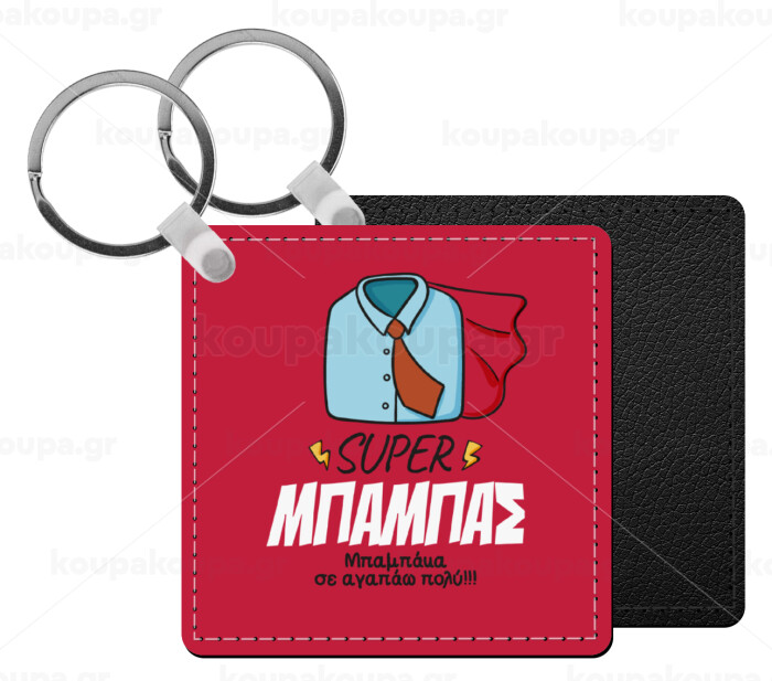 SUPER ΜΠΑΜΠΑΣ, Μπρελόκ Δερματίνη, τετράγωνο ΜΑΥΡΟ (5x5cm)