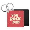 YOU ROCK DAD, Μπρελόκ Δερματίνη, τετράγωνο ΜΑΥΡΟ (5x5cm)