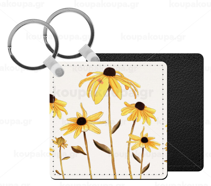Daisies flower, Μπρελόκ Δερματίνη, τετράγωνο ΜΑΥΡΟ (5x5cm)