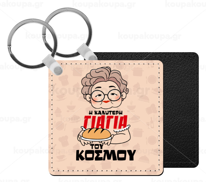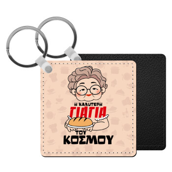 Η καλύτερη γιαγιά του κόσμου!, Μπρελόκ Δερματίνη, τετράγωνο ΜΑΥΡΟ (5x5cm)