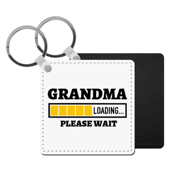 Grandma Loading, Μπρελόκ Δερματίνη, τετράγωνο ΜΑΥΡΟ (5x5cm)