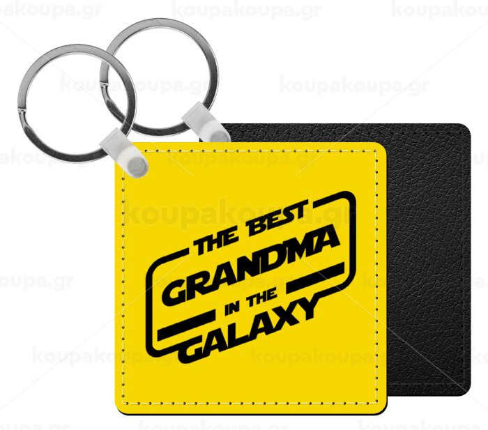 The Best GRANDMA in the Galaxy, Μπρελόκ Δερματίνη, τετράγωνο ΜΑΥΡΟ (5x5cm)