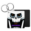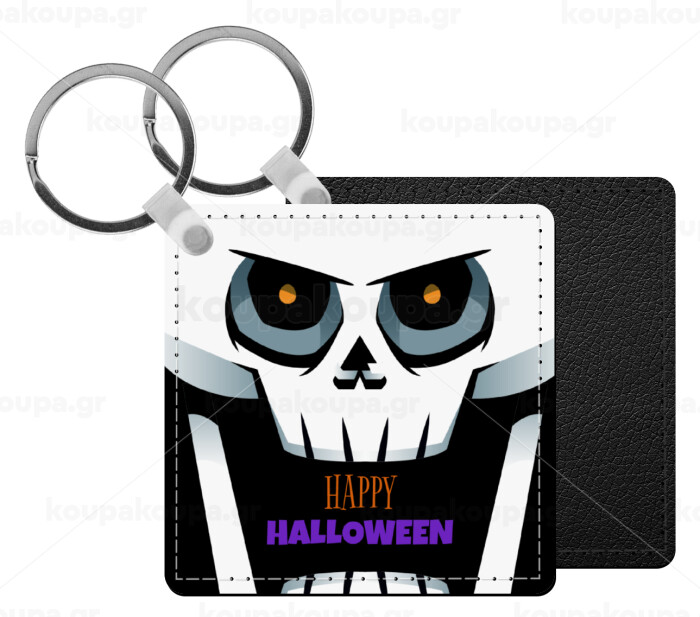 Halloween trick or treat Skeleton, Μπρελόκ Δερματίνη, τετράγωνο ΜΑΥΡΟ (5x5cm)