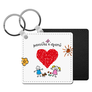 Μανούλα σ'αγαπώ!, Μπρελόκ Δερματίνη, τετράγωνο ΜΑΥΡΟ (5x5cm)