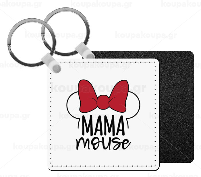 MAMA mouse, Μπρελόκ Δερματίνη, τετράγωνο ΜΑΥΡΟ (5x5cm)