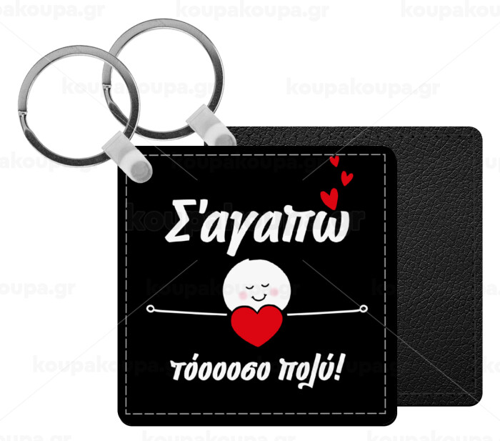 Σ΄αγαπώ τόοοοσο πολύ (Κορίτσι)!!!, Μπρελόκ Δερματίνη, τετράγωνο ΜΑΥΡΟ (5x5cm)