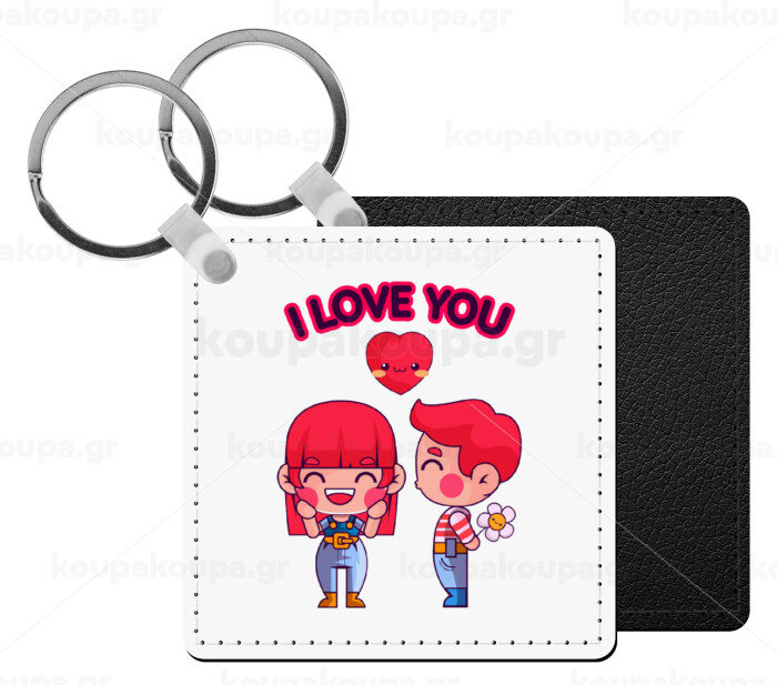 Couple, I love you, Μπρελόκ Δερματίνη, τετράγωνο ΜΑΥΡΟ (5x5cm)