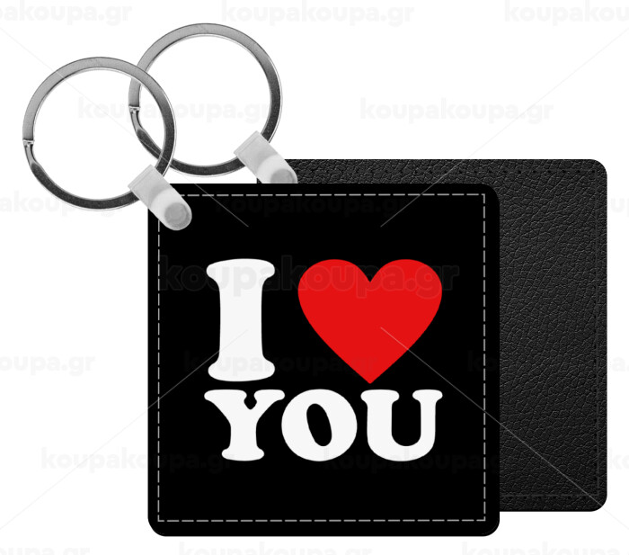 I LOVE YOU, Μπρελόκ Δερματίνη, τετράγωνο ΜΑΥΡΟ (5x5cm)