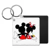 mickey and minnie hags, Μπρελόκ Δερματίνη, τετράγωνο ΜΑΥΡΟ (5x5cm)