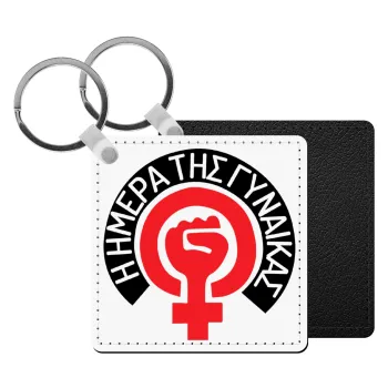 Ημέρα της γυναίκας, Μπρελόκ Δερματίνη, τετράγωνο ΜΑΥΡΟ (5x5cm)