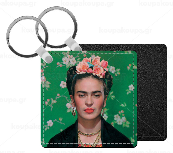 Frida Kahlo, Μπρελόκ Δερματίνη, τετράγωνο ΜΑΥΡΟ (5x5cm)