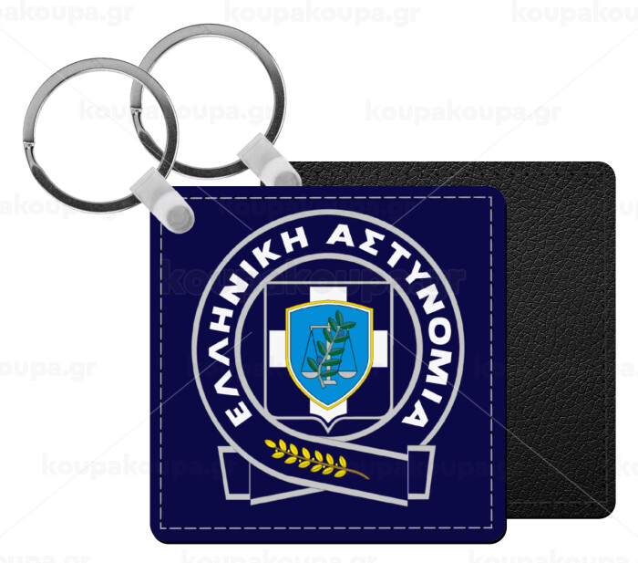 Ελληνική Αστυνομία, Μπρελόκ Δερματίνη, τετράγωνο ΜΑΥΡΟ (5x5cm)