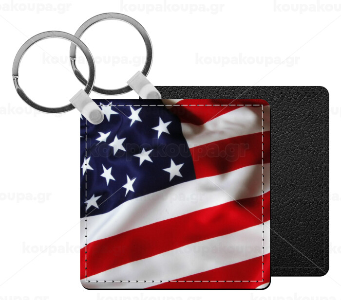 Σημαία Αμερικής, Μπρελόκ Δερματίνη, τετράγωνο ΜΑΥΡΟ (5x5cm)