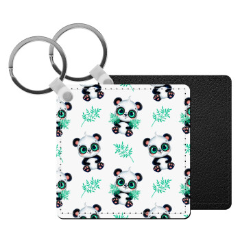 Panda, Μπρελόκ Δερματίνη, τετράγωνο ΜΑΥΡΟ (5x5cm)