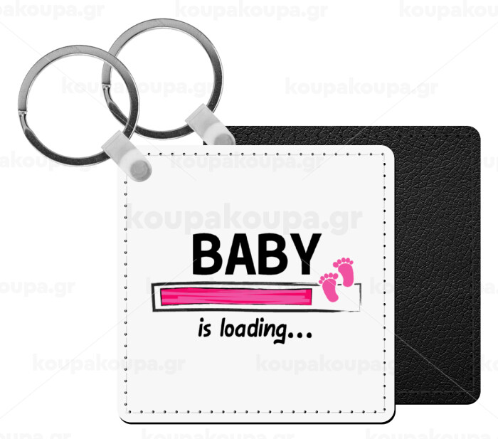 Baby is Loading GIRL, Μπρελόκ Δερματίνη, τετράγωνο ΜΑΥΡΟ (5x5cm)