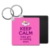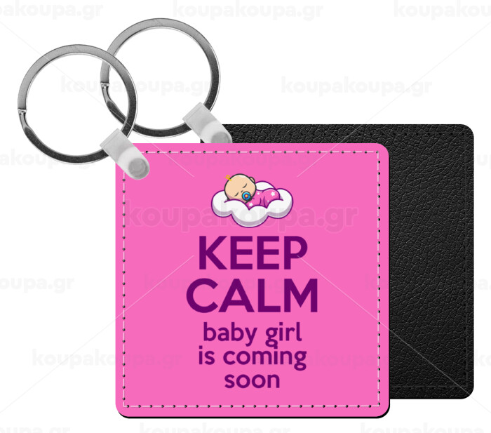 KEEP CALM baby girl is coming soon!!!, Μπρελόκ Δερματίνη, τετράγωνο ΜΑΥΡΟ (5x5cm)