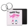 Mommy Shark (με ονόματα παιδικά), Μπρελόκ Δερματίνη, τετράγωνο ΜΑΥΡΟ (5x5cm)