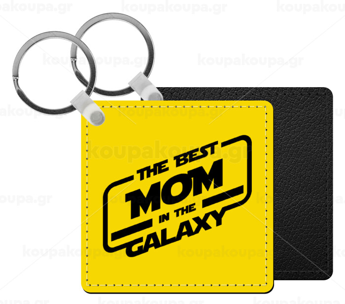 The Best MOM in the Galaxy, Μπρελόκ Δερματίνη, τετράγωνο ΜΑΥΡΟ (5x5cm)