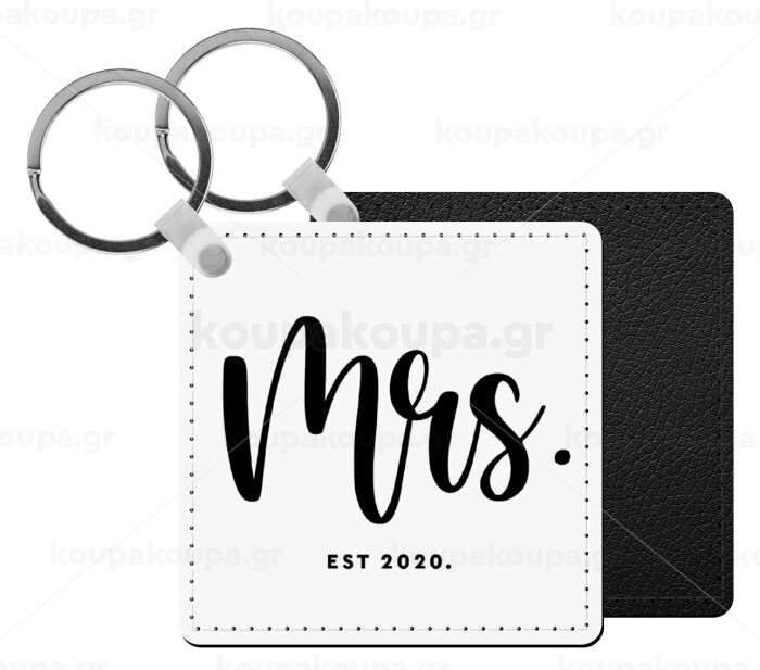 Mr & Mrs (Mrs), Μπρελόκ Δερματίνη, τετράγωνο ΜΑΥΡΟ (5x5cm)