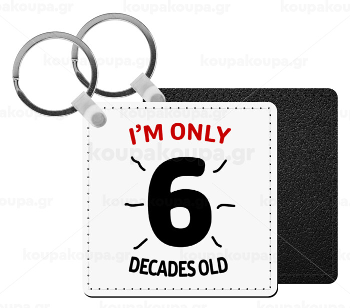 I'm only NUMBER decades OLD, Μπρελόκ Δερματίνη, τετράγωνο ΜΑΥΡΟ (5x5cm)