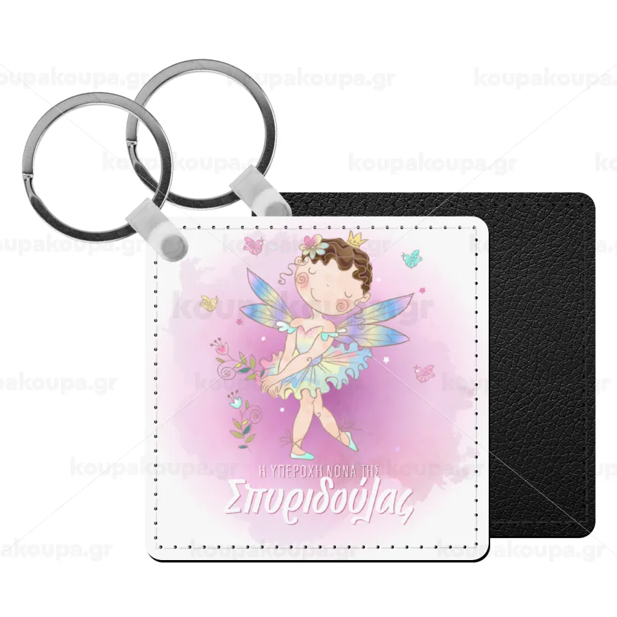 Η νονά μου, Νεράϊδα, Μπρελόκ Δερματίνη, τετράγωνο ΜΑΥΡΟ (5x5cm)