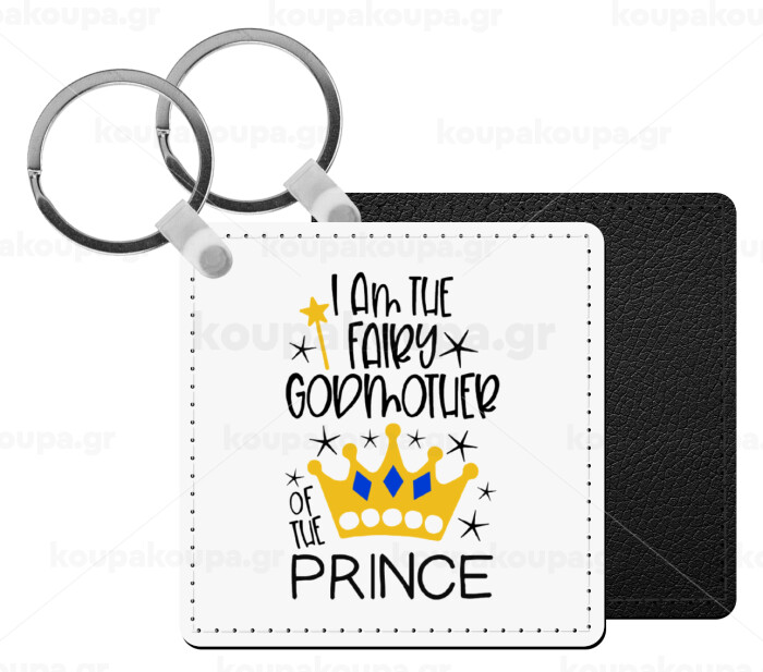 I am the fairy Godmother of the Prince, Μπρελόκ Δερματίνη, τετράγωνο ΜΑΥΡΟ (5x5cm)