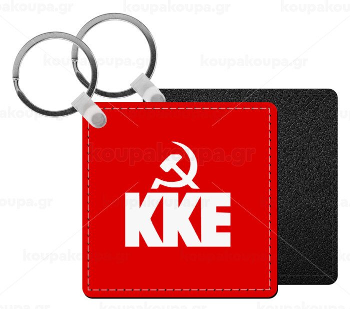 ΚΚΕ, Μπρελόκ Δερματίνη, τετράγωνο ΜΑΥΡΟ (5x5cm)