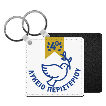Σχολικό σήμα περιστέρι με δάφνες, Μπρελόκ Δερματίνη, τετράγωνο ΜΑΥΡΟ (5x5cm)