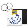 Έμβλημα Σχολικό μπλε/χρυσό περιστέρι, Μπρελόκ Ξύλινο τετράγωνο MDF
