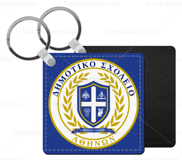 Έμβλημα Σχολικό μπλε, Μπρελόκ Δερματίνη, τετράγωνο ΜΑΥΡΟ (5x5cm)