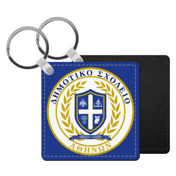 Έμβλημα Σχολικό, Μπρελόκ Δερματίνη, τετράγωνο ΜΑΥΡΟ (5x5cm)