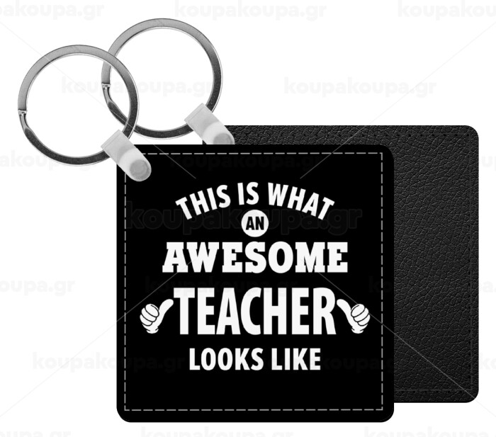 Teacher, Μπρελόκ Δερματίνη, τετράγωνο ΜΑΥΡΟ (5x5cm)