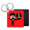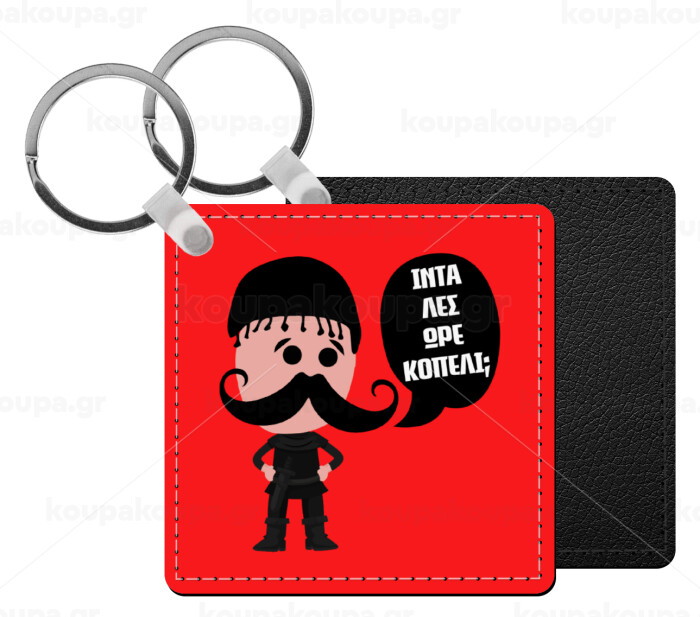 Κρητικός "Ίντα λες ωρέ κοπέλι", Μπρελόκ Δερματίνη, τετράγωνο ΜΑΥΡΟ (5x5cm)