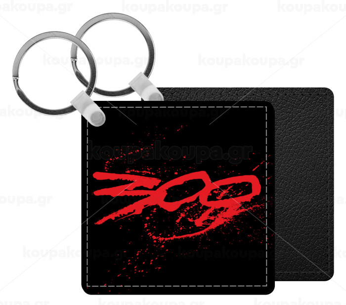 Οι 300 της Σπάρτης, Μπρελόκ Δερματίνη, τετράγωνο ΜΑΥΡΟ (5x5cm)