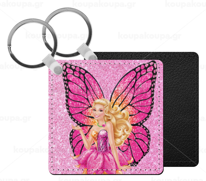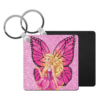 Barbie Νεράιδα, Μπρελόκ Δερματίνη, τετράγωνο ΜΑΥΡΟ (5x5cm)