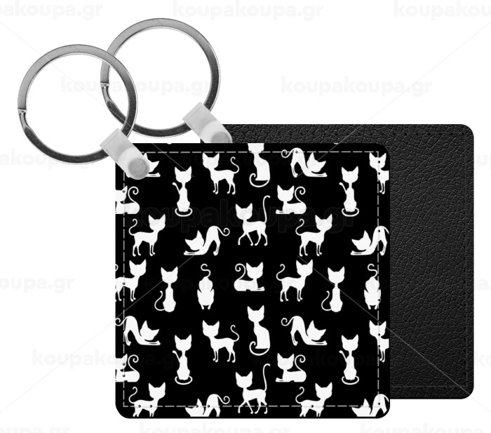 Γατούλες κυρίες, Μπρελόκ Δερματίνη, τετράγωνο ΜΑΥΡΟ (5x5cm)